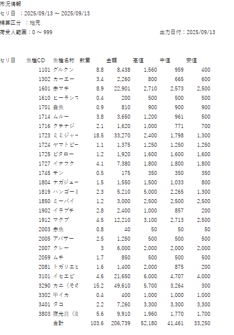 9.13市況情報