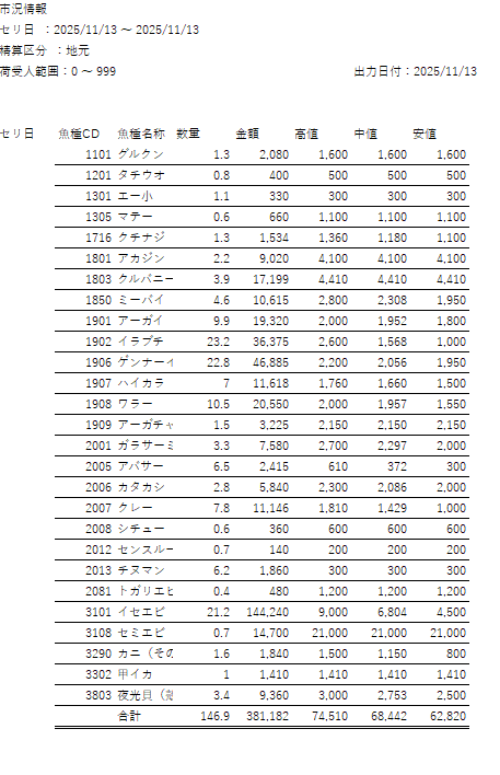 11.13市況情報